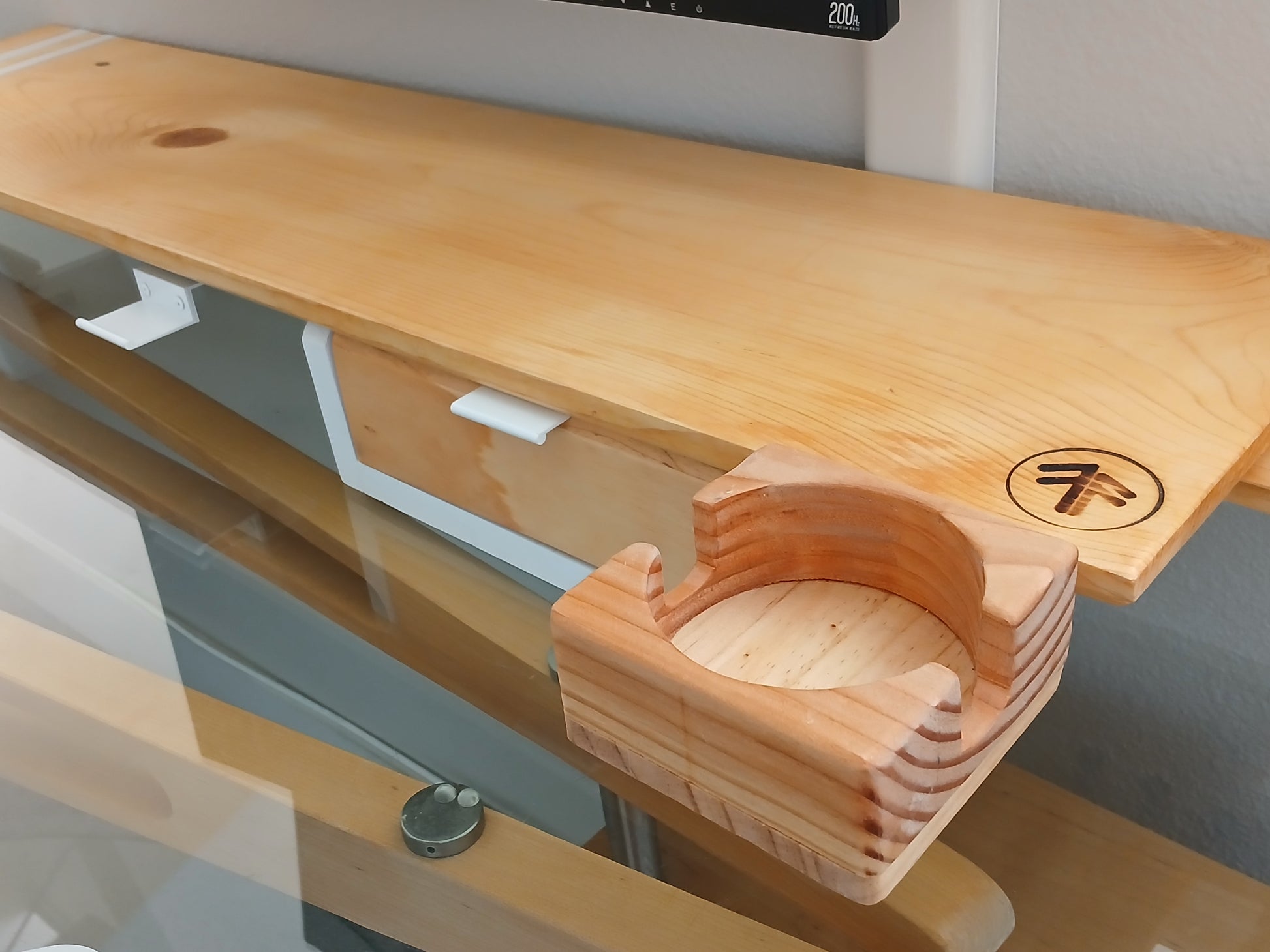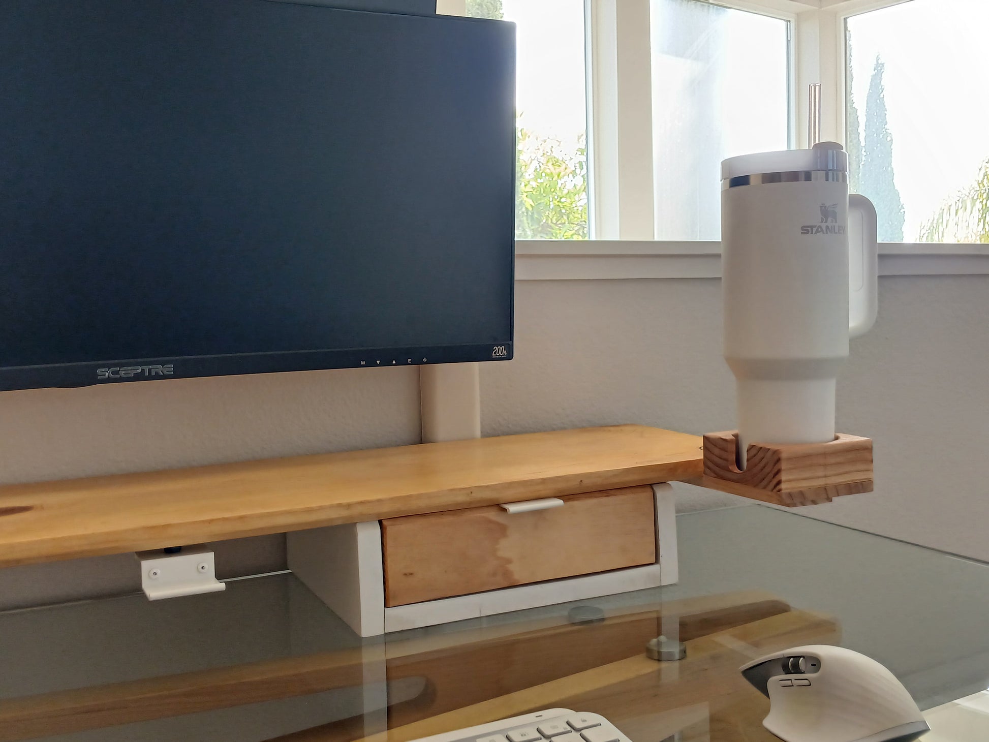 This cup holder offers a practical solution for securely holding beverages with your desk setup. Designed for stability and ease of use, it helps prevent spills and keeps drinks within easy reach. Drinks can now be kept off your desk creating both a functional and clean aesthetic. Versatile in holding mugs with handles or cups, it's the perfect edition to any work or creative space.