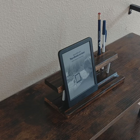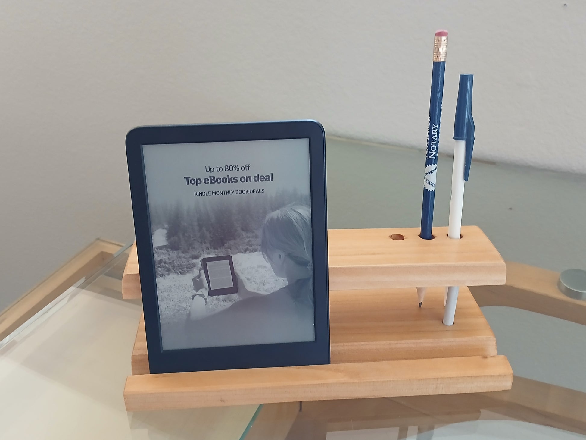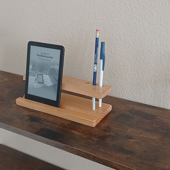 Designed to accommodate a variety of devices, this stand securely holds smartphones, tablets, and e-readers like Kindles at an ideal viewing angle — whether you’re reading, video-calling, or multitasking. Three built-in pen holders keep your favorite writing tools close at hand, making this stand as functional as it is stylish.